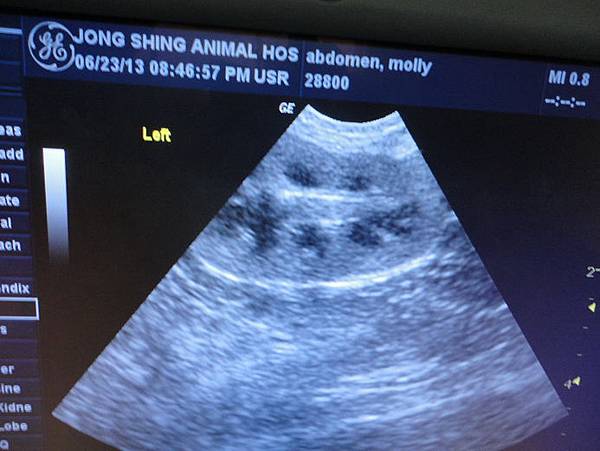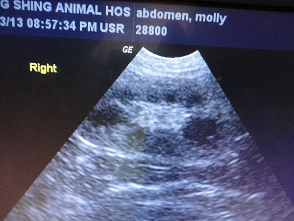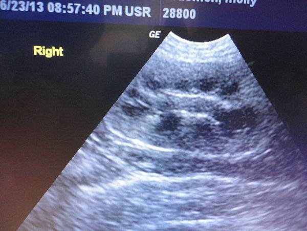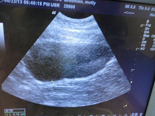 先看了膀胱,膀胱沒有明顯亮亮的結晶或是石頭
