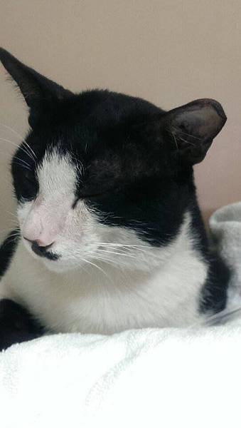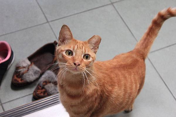 長尾是聽到我摩托車回來的聲音開心的喵喵叫跑來找我,絲毫沒注意到躺在門口的鼻屎