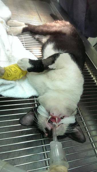 醫院絕育的動物都會上軟針吊點滴,雖說上點滴的時候有掙扎了一下