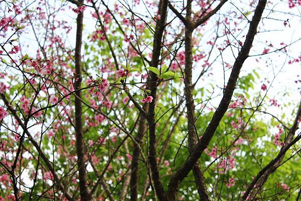 路上很多開滿花的樹,不知道是不是櫻花