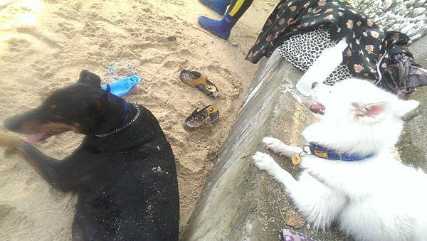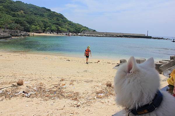 好多人在浮淺,帶狗的我們找不太到地方可以放鬆的放狗~