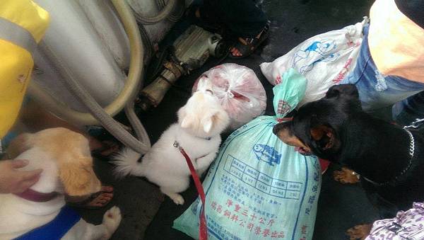而且還是從高雄大夥一起騎摩托車載狗到東港搭車